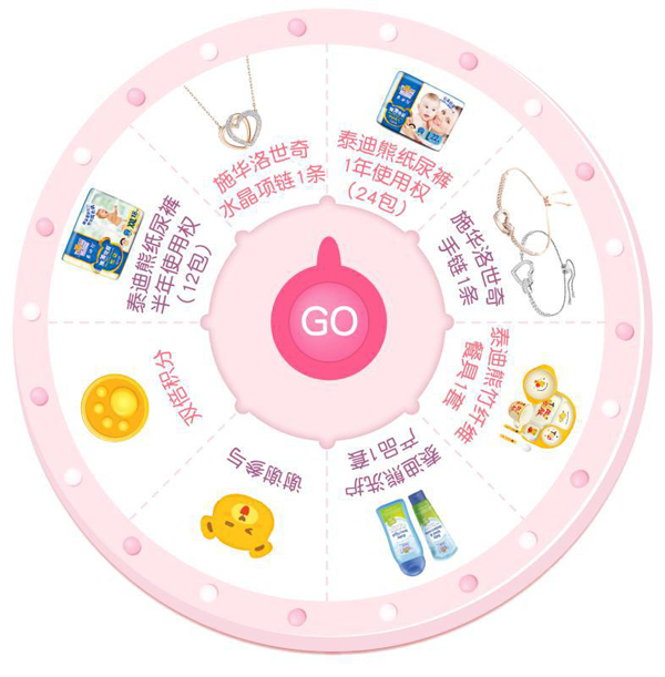 本次活動,泰迪熊紙尿褲將為女神媽媽們獻(xiàn)上施華洛世奇水晶項鏈、施華洛世奇水晶手鏈、泰迪熊紙尿褲一年使用權(quán)、泰迪熊洗護(hù)產(chǎn)品和泰迪熊寶寶練習(xí)專用餐具(套裝)等眾多Teddy安心寵愛禮,所有有售泰迪熊紙尿褲的線下門店都參加活動,會員們到店購買產(chǎn)品后掃碼積分都有機(jī)會獲得以上禮品。