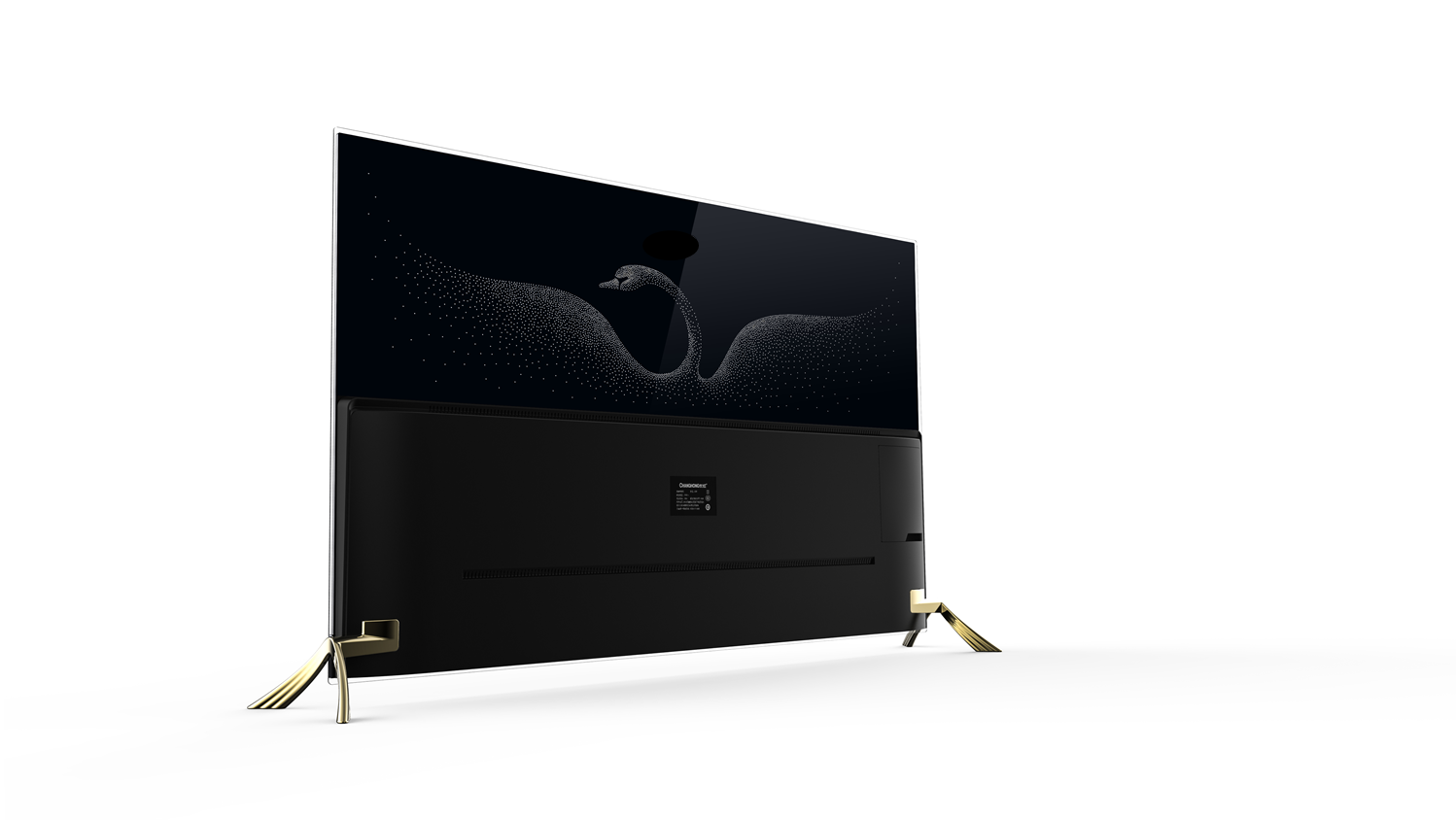 長虹CHiQ人工智能電視新品Q5R,以藝術(shù)化天鵝圖案為元素,將一生一世的愛情信念銘刻于電視機之上,讓家人享受被愛的感覺。