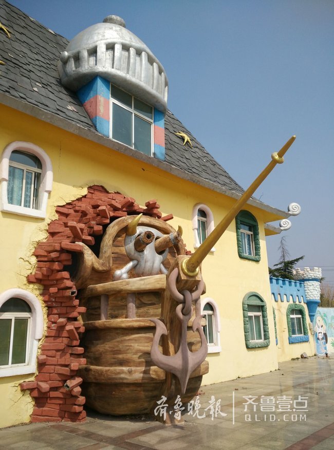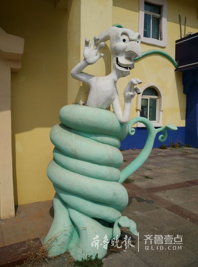 大門外兩側(cè)的海盜船、精靈、小丑等立體雕塑雖然仍活靈活現(xiàn)但多了幾分孤單和滄桑。