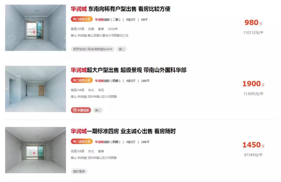 中原地產發(fā)布的華潤城潤府二期二手房的掛牌單價,已經超過11萬/㎡。如今的大沖片區(qū),已經成為了豪宅的代名詞。