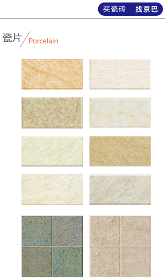 2、從名稱和用途上也能區(qū)分,一般全瓷磚叫拋光磚,玻化磚等等,還有一般叫帶某某石,某某玉的,用途上分現(xiàn)在大部分家用粘地的都是全瓷的了,家用粘墻的全是半瓷的。