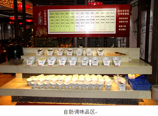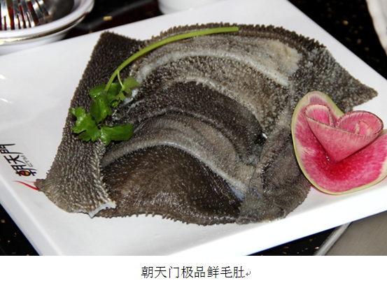 和大多數(shù)火鍋店一樣,朝天門的味碟是自助調(diào)配的,品種非常齊全,東西也新鮮,食客可以根據(jù)自己的口味進(jìn)行搭配。我的習(xí)慣是蒜泥、芝麻、花生碎加上少許香菜和耗油,然后用火鍋的紅湯來(lái)調(diào)。個(gè)人感覺(jué),在各種調(diào)料里,蒜泥的品質(zhì)至關(guān)重要,不僅提味,還可以預(yù)防拉肚子;而真正的吃貨們一般是不加花生醬的,因?yàn)榛ㄉu雖然香,卻會(huì)掩蓋食材本身的味道。