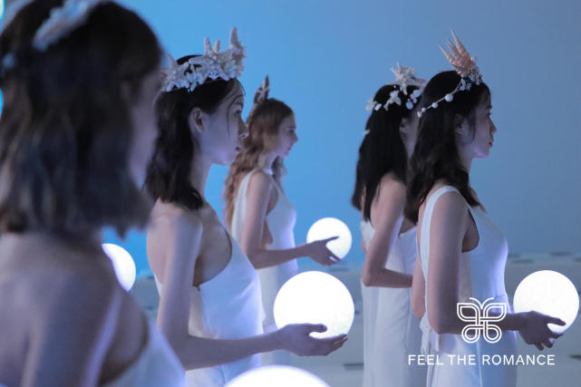 溫存而神秘,海鳥聲伴隨著每奏穿透心弦的豎琴音,讓全場觀眾置身深海之境,夜光中的人魚仙子捧著明珠緩緩進場,一段關(guān)于深海的浪漫故事娓娓道來……