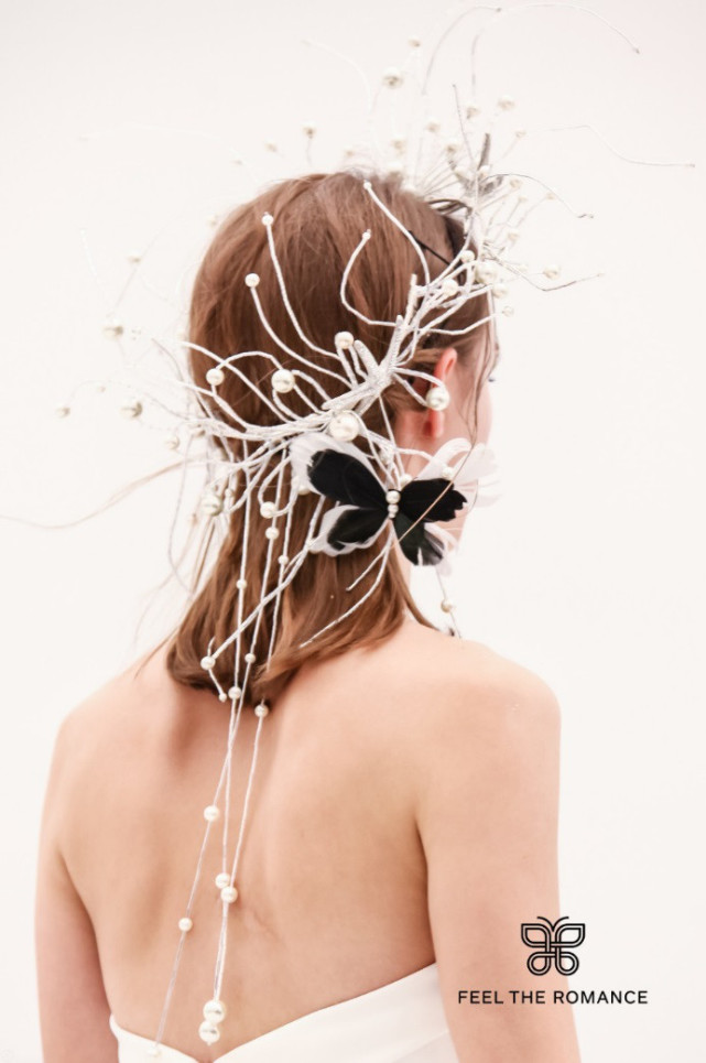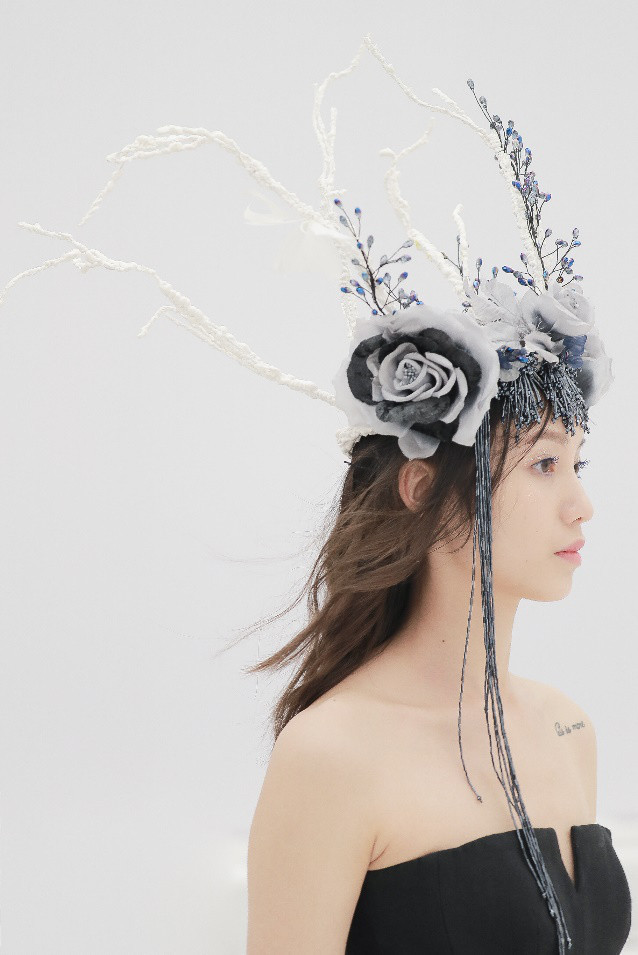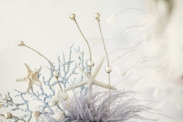 珊瑚的長如犄角,開出曼妙的花,在模特發(fā)間的海底花姿,