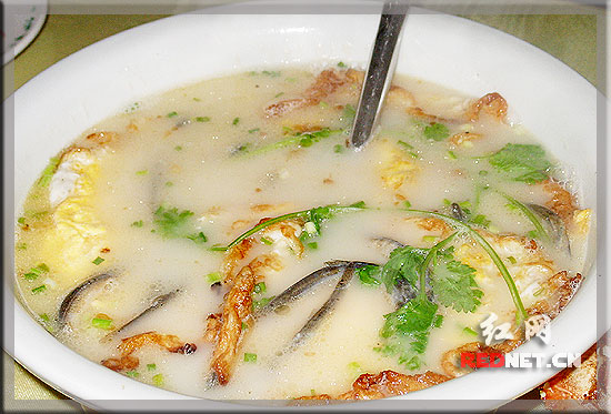 第三道是店小二推薦的泥鰍荷包蛋湯,口感比較清潤,味道鮮美。但也許是荷包蛋的湯總是特別混濁的緣故,看相就很一般了,如果能用幾片青菜點綴,或許要好些,只是可能又影響味道了。