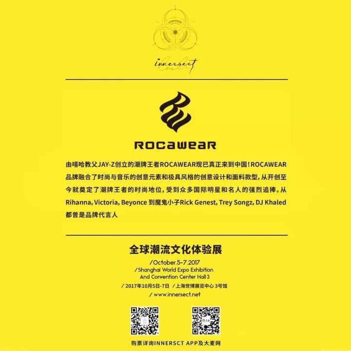 美國天王歌手、嘻哈教父Jay-Z創(chuàng)立的極具潮流風(fēng)格的時(shí)尚品牌ROCAWEAR,融合了嘻哈文化、音樂時(shí)尚的創(chuàng)意元素和風(fēng)格的創(chuàng)意設(shè)計(jì)和面料款型,從開創(chuàng)至今不斷推陳出新,成功創(chuàng)造出令人耳目一新的都會(huì)潮流感,奠定了潮牌王者的時(shí)尚地位,并受到眾多國際明星和名人的強(qiáng)烈追捧。從Beyonce,Rihanna,Victoria到魔鬼小子Rick Genest,Trey Songz,DJ Khaled都曾是品牌形象代言。本次全新形象的ROCAWEAR來到中國,首次亮相陳冠希呈現(xiàn)INNERSECT全球潮流文化體展!