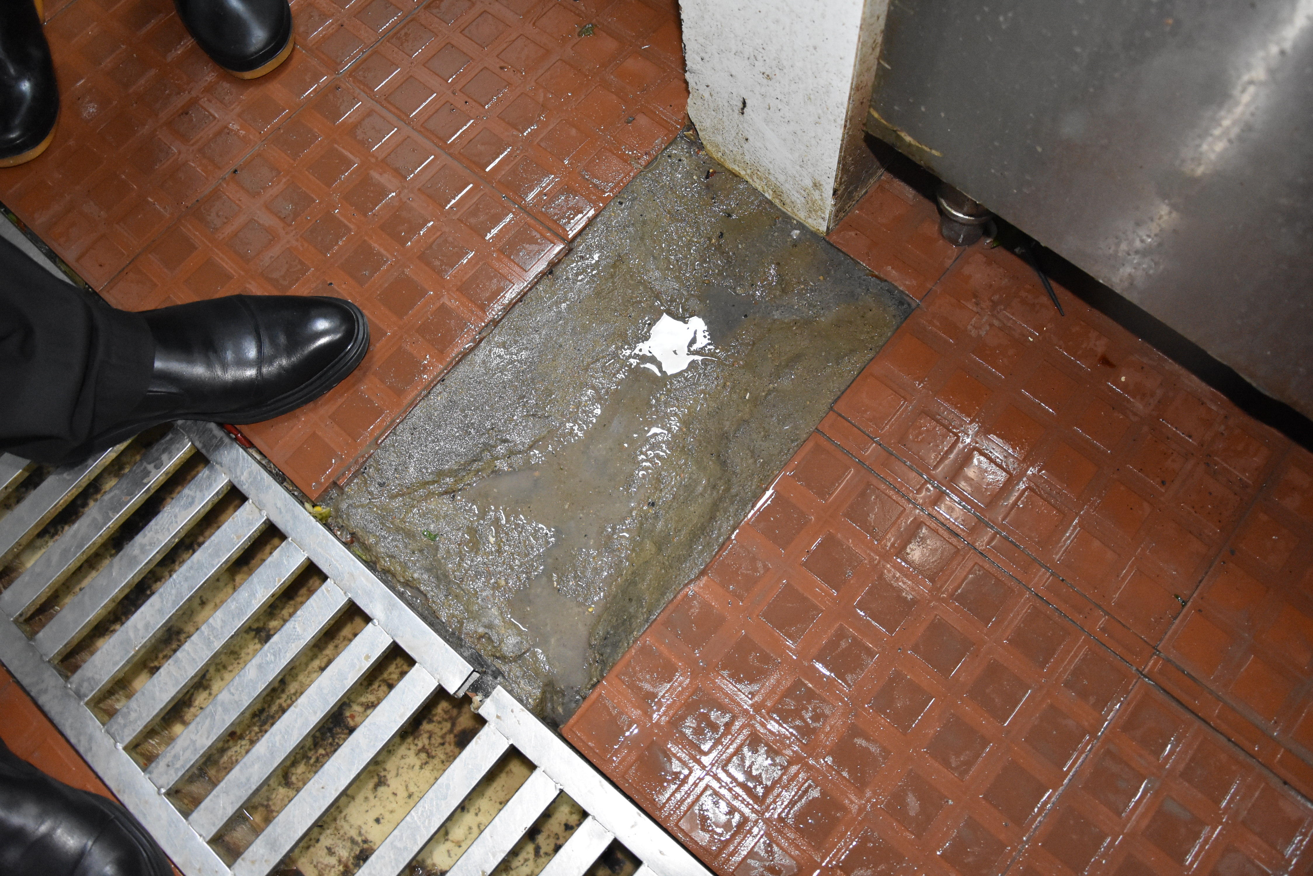 (后廚排水溝縫隙過(guò)大,需要整改)