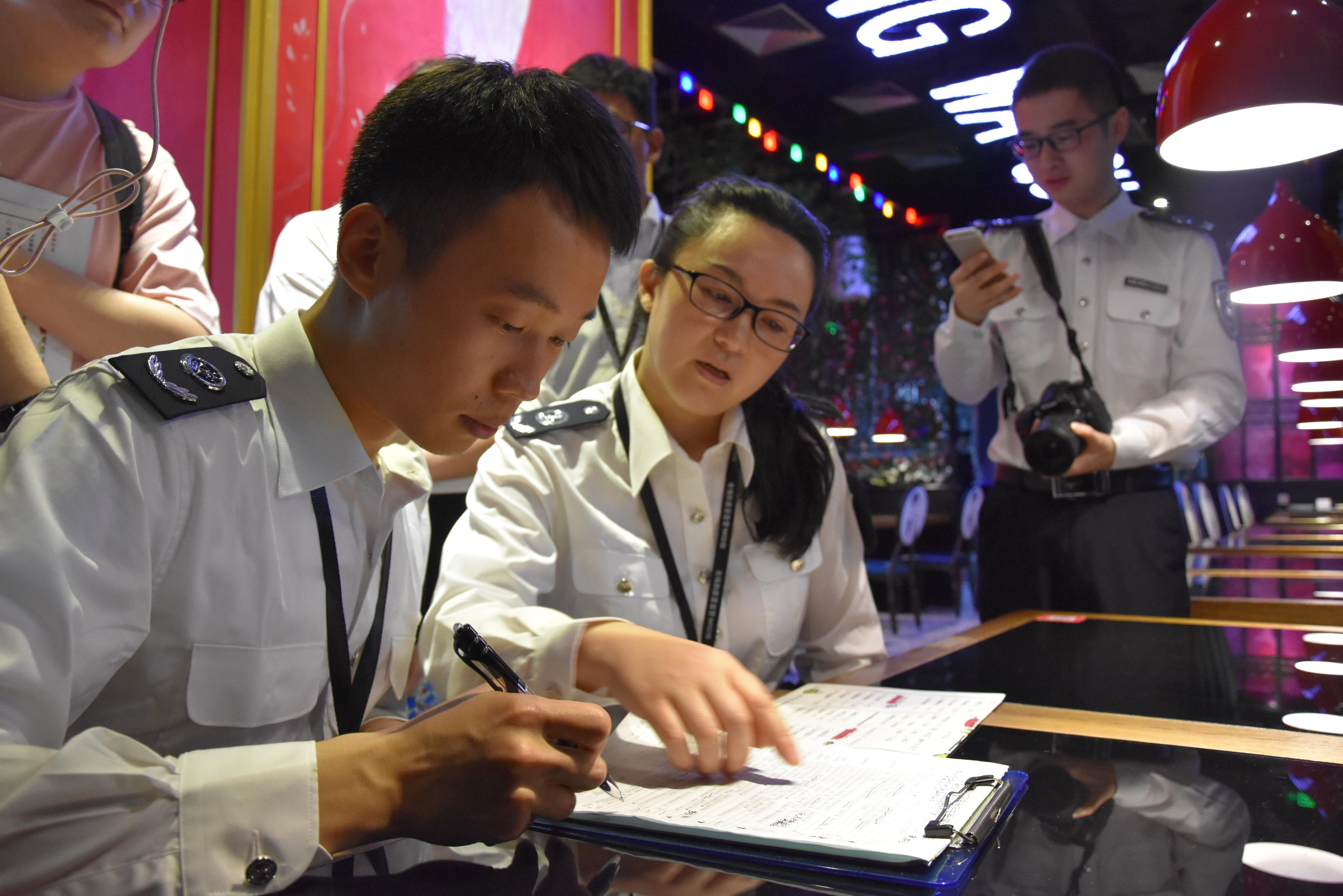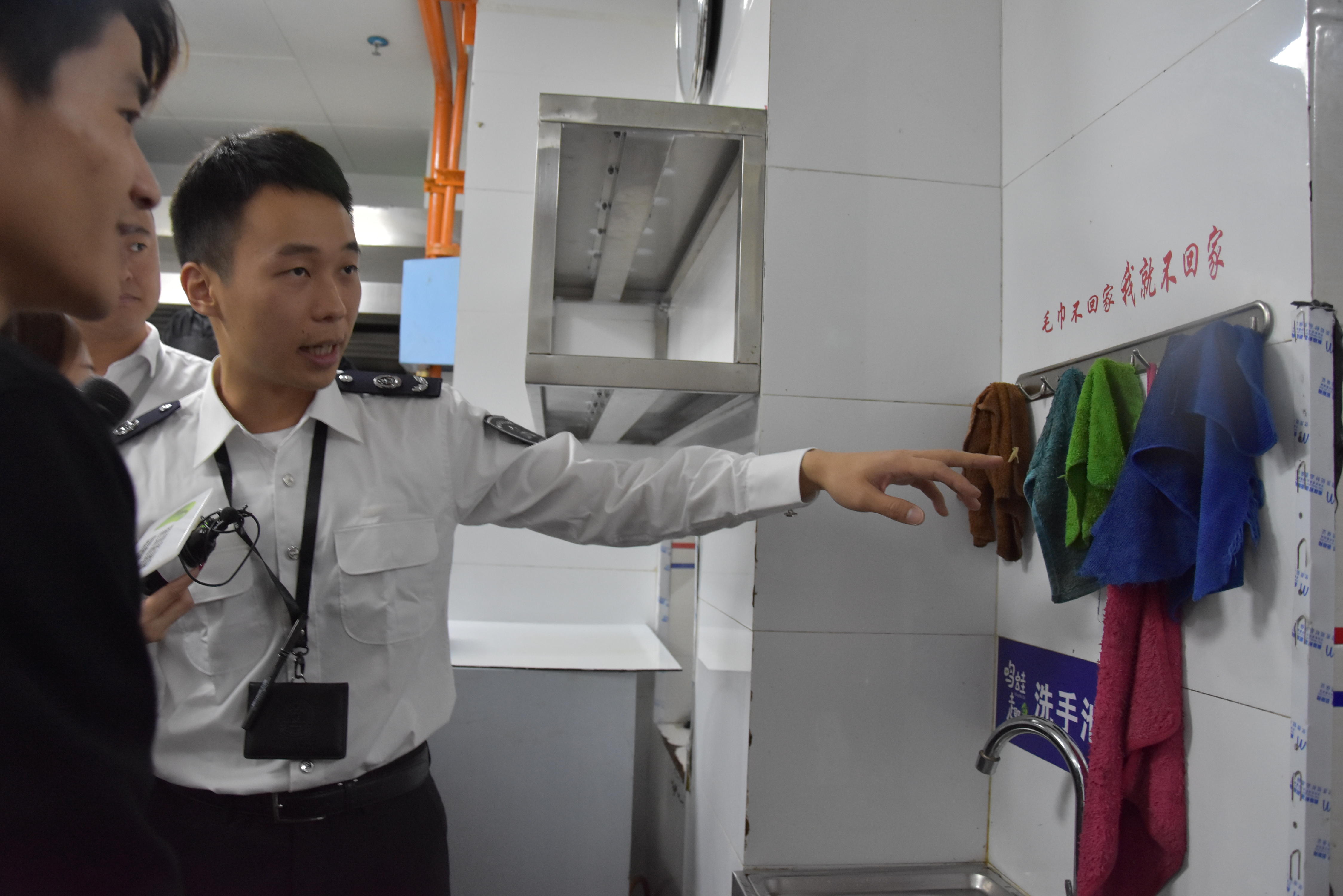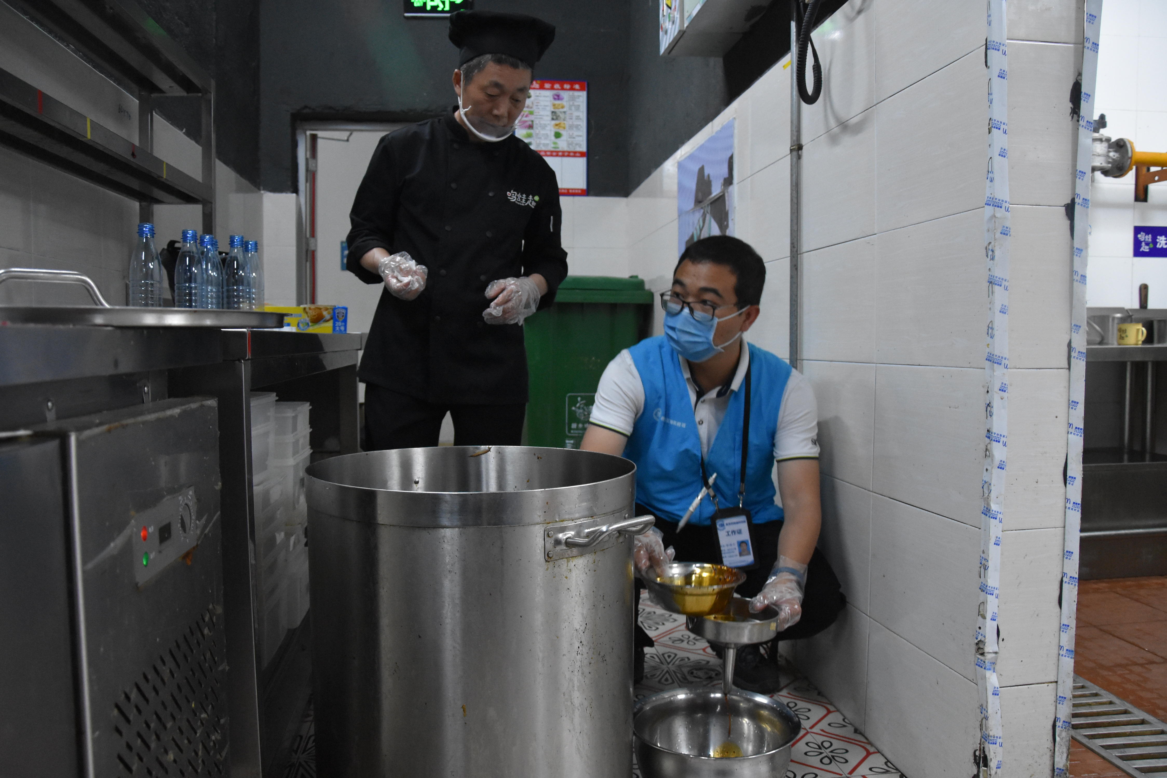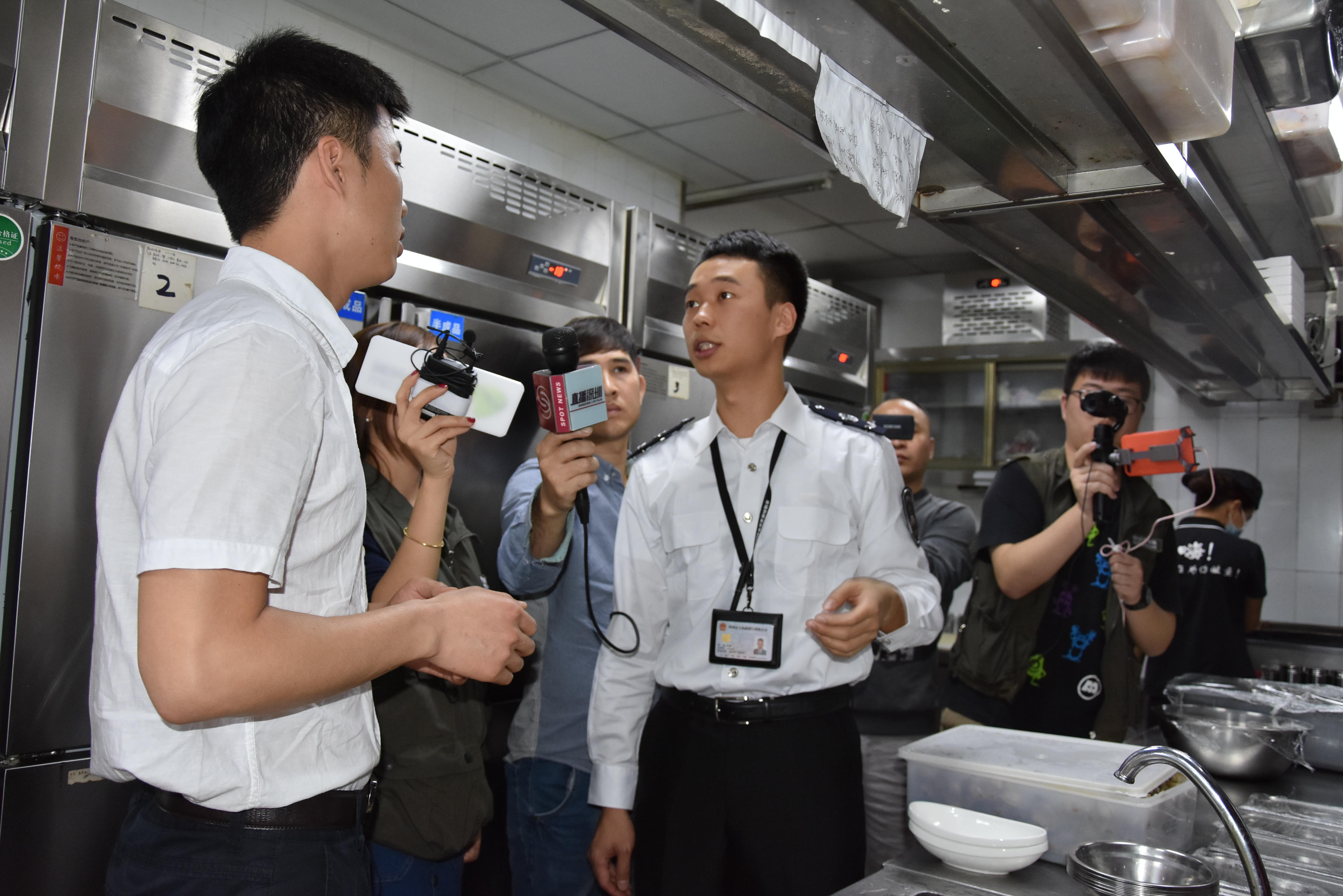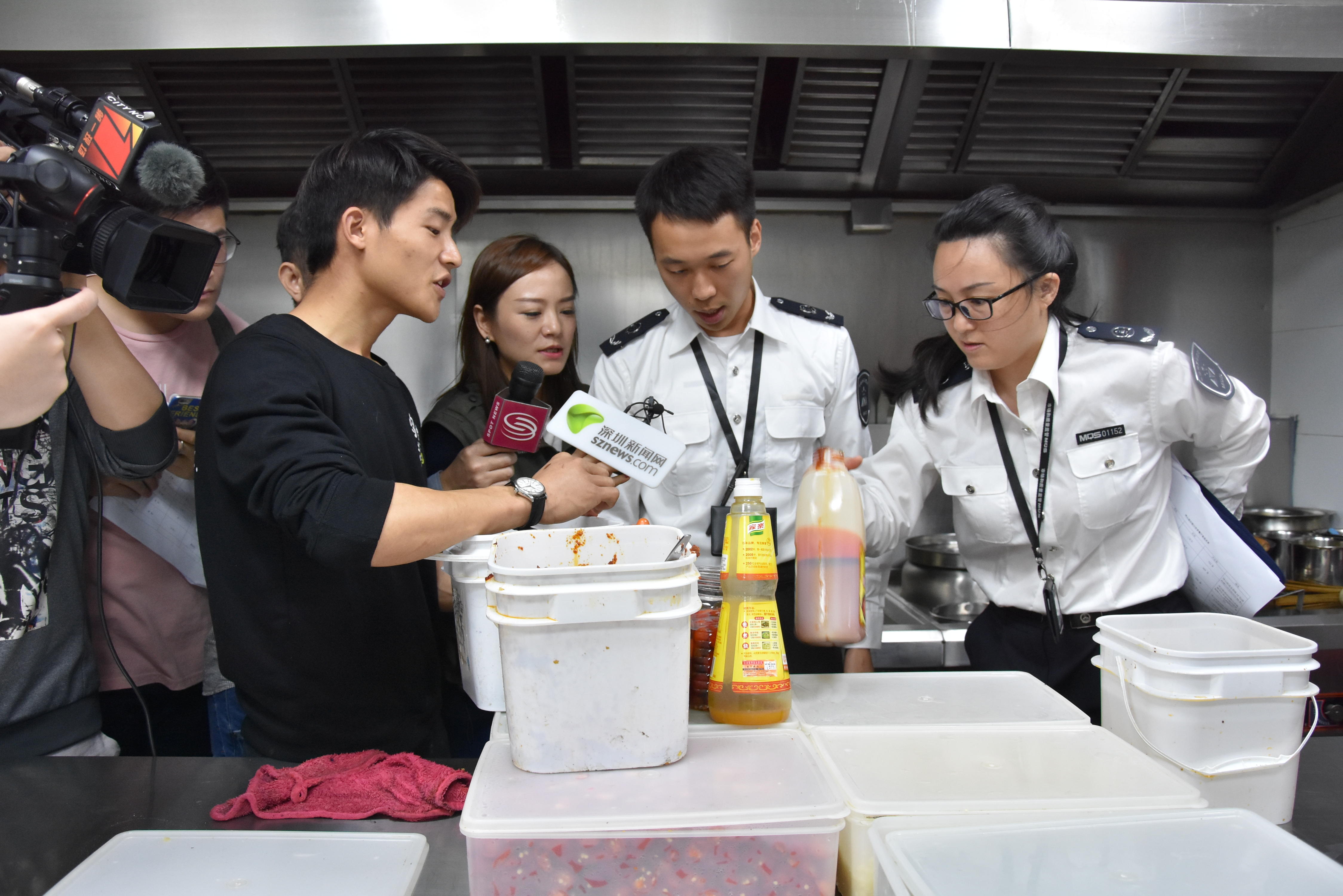 (執(zhí)法人員進(jìn)入后廚檢查)