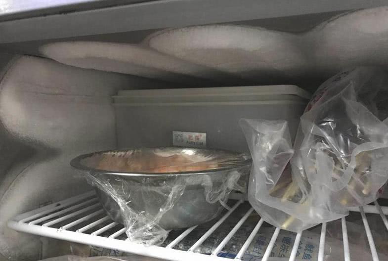 (后廚冷柜內(nèi)霜過(guò)厚,執(zhí)法人員要求定期除霜)
