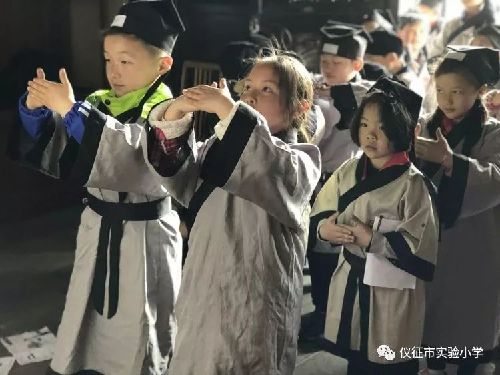 他們抬腳聚步跨龍門,體驗古典風(fēng)俗;揖手躬身拜孔子,學(xué)習(xí)尊師傳統(tǒng)。