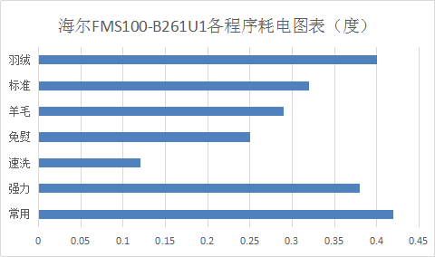 用電量和洗滌時(shí)間是成正比的,羽絨服、混合洗、化纖以及棉織物的清洗會(huì)較費(fèi)電,大體上單個(gè)程序的耗電量在:0.1-0.5度之間。海爾EG8012B39SU1清洗程序種類(lèi)很多,適合有精細(xì)化清洗需求的人,海爾的另一款FMS100-B261U1就比較適合不太需要精細(xì)清洗方式的人群了。