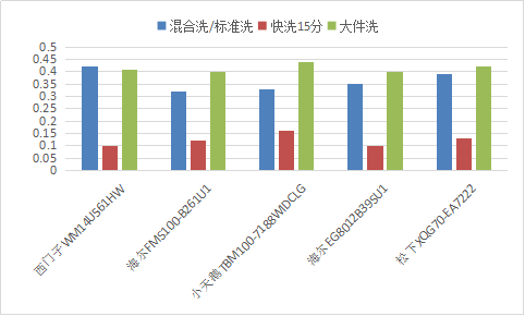 這里要說(shuō)下洗凈比,它表示衣服被洗干凈的程度,國(guó)家標(biāo)準(zhǔn)規(guī)定合格值為0.7,這五款洗衣機(jī)中海爾、西門(mén)子、松下的官方數(shù)據(jù)都是1.03,小天鵝是0.9(國(guó)家規(guī)定達(dá)到0.91的就是一級(jí)能效級(jí)別)