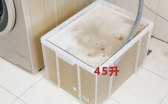 用水量測(cè)試要比前面幾項(xiàng)測(cè)試?yán)酆芏啵ǹ蓿。┪覀儼严匆聶C(jī)的排水管接到一個(gè)容量為45升左右的水箱,通過(guò)洗衣機(jī)排出來(lái)的廢水裝滿(mǎn)的水箱個(gè)數(shù)來(lái)判斷洗衣機(jī)的用水量。