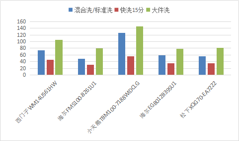 通過(guò)對(duì)幾個(gè)常用程序耗電量的求和,我們得到了這幾款洗衣機(jī)的耗電量排名: