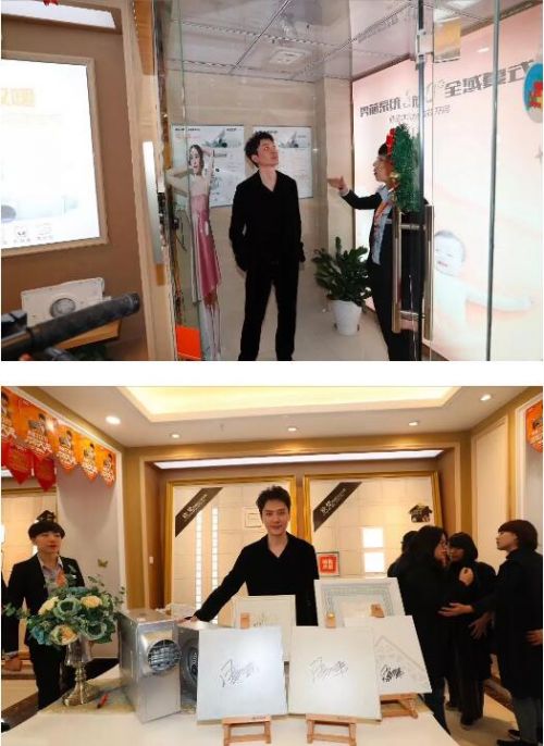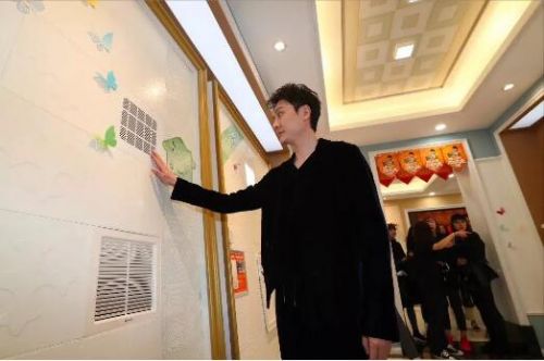 馮紹峰近距離感受奧普君的集成吊頂系列產(chǎn)品和寶寶浴霸。