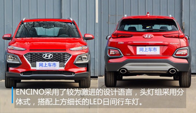 外觀方面,ENCINO采用了較為激進(jìn)的設(shè)計(jì)語言,大燈組采用分體式,搭配上方細(xì)長的LED日間行車燈,造型較為前衛(wèi)。前進(jìn)氣格柵為六邊形造型,內(nèi)部配以蜂窩狀裝飾。車身側(cè)面采用雙色車身+懸浮式車頂,前后翼子板處配備了寬邊的黑色輪眉。新車車尾造型與車頭呼應(yīng),細(xì)長的LED示寬燈搭配包含了倒車燈、轉(zhuǎn)向燈和后霧燈的尾燈組。