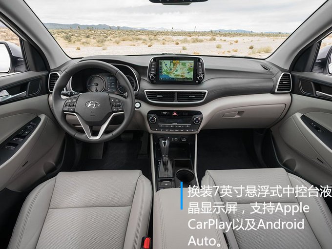 新款途勝內(nèi)飾相比現(xiàn)款車型改動(dòng)較大,配備三輻式多功能方向盤。中控臺(tái)換裝7英寸懸浮式液晶顯示屏,且支持Apple CarPlay和Android Auto。新車搭載2.0L或2.4L四缸直噴發(fā)動(dòng)機(jī),最大功率分別為120kW與133kW,傳動(dòng)系統(tǒng)匹配6速手自一體變速箱。
