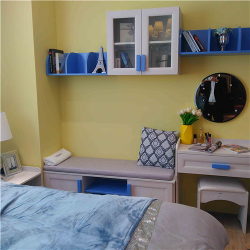 \u00A0美式家具搭配在近幾年也開始越來(lái)越受人們的喜愛(ài)。深藍(lán)的色調(diào)和復(fù)古的搭配非常適合男孩子,美式家具多以沉穩(wěn)、大氣而著稱。皮革、實(shí)木更是常用材料。這些硬朗的材料更能體現(xiàn)難孩子的性格,而且地毯、墻紙這樣的相對(duì)環(huán)保的材料用來(lái)打造兒童房也更加具有安全性也更有保障。所以家具搭配時(shí)色調(diào)的選擇要注意,家具選擇了美式風(fēng)格經(jīng)典的藍(lán)色,與紅色搭配。深藍(lán)色、淺藍(lán)色、白色、紅色相互穿插讓空間看起來(lái)繽紛多彩。
