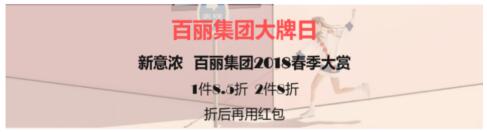 3月22日早十-3月25日早十,在唯品會(huì)購(gòu)買百麗集團(tuán)旗下品牌即可享受1件8.5折,2件8折等優(yōu)惠價(jià),打完折后還可以再使用唯品會(huì)的紅包。買多優(yōu)惠多!