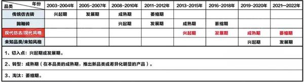 因為2010年由簡一等企業(yè)為代表的拋釉磚興起并壯大,仿古磚進入增長停止期或者說萎縮期。