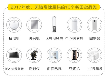 借助天貓大數(shù)據(jù),先后孵化出洗碗機(jī)、掃地機(jī)、無(wú)葉電風(fēng)扇、mini洗衣機(jī)、空凈器、嵌入式微蒸烤、投影儀、曲面電視、豆?jié){機(jī)、hifi電飯煲10大“新物種”,成為消費(fèi)升級(jí)中的明星單品,讓國(guó)貨家電品牌踏準(zhǔn)消費(fèi)升級(jí)的趨勢(shì)。
