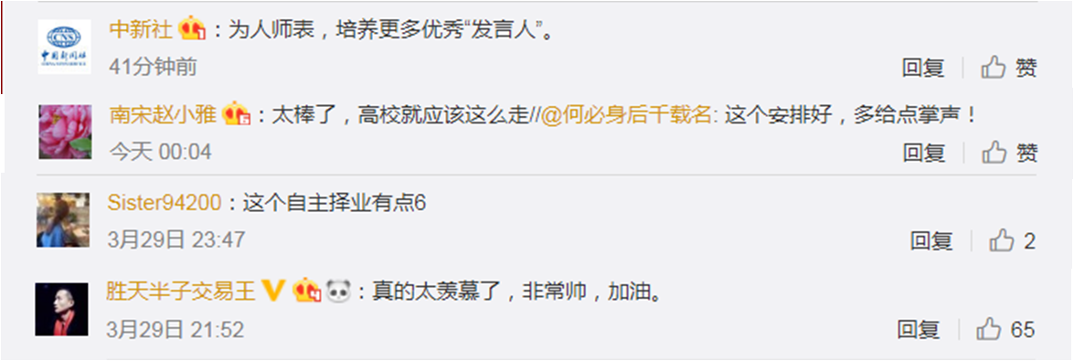 網(wǎng)友認(rèn)為,楊宇軍擔(dān)任新職務(wù)會(huì)有出色表現(xiàn)。作為一名有豐富經(jīng)驗(yàn)的新聞發(fā)言人,楊宇軍此次“轉(zhuǎn)軌”能更好地對(duì)新聞發(fā)言人開展培訓(xùn)和公共輿論管理工作。