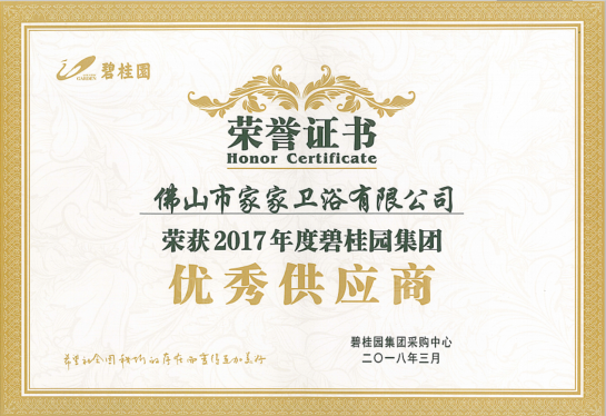 \u00A0 \u00A0 中國陶瓷網(wǎng)訊 3月20日,碧桂園集團2018年度供應(yīng)商大會在佛山碧桂園總部隆重召開。會議表彰環(huán)節(jié), 浪鯨衛(wèi)浴憑借優(yōu)越的產(chǎn)品質(zhì)量、準時快速的貨期、周到優(yōu)質(zhì)的服務(wù),贏得碧桂園集團上下一致認可,在近10000家供應(yīng)商中脫穎而出,成為碧桂園優(yōu)秀供應(yīng)商中潔具類綜合評分第一的企業(yè),并獲得“2017年度碧桂園優(yōu)秀供應(yīng)商”稱號,這是浪鯨衛(wèi)浴再次榮獲集團此項殊榮。