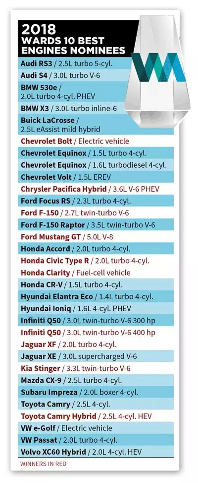 首先要告訴大家,沃德十佳發(fā)動機(jī)榜單是由美國雜志《Ward''''''''s Auto World》創(chuàng)立的,每年12月發(fā)布。2018年的沃德十佳發(fā)動機(jī)獲得者,已經(jīng)在2017年12月中旬出爐。