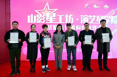 推介會(huì)上,山東星工坊影視文化有限公司總經(jīng)理趙京橋?qū)⑸綎|影視傳媒集團(tuán)頒發(fā)的“山影藝員培訓(xùn)選拔基地”牌匾授予山影星工坊·演藝星學(xué)院。