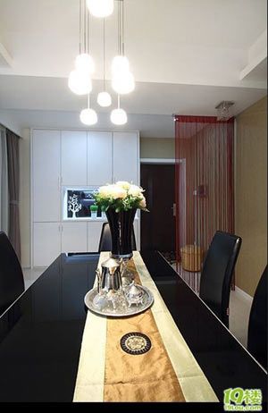 后現(xiàn)代裝修風(fēng)格:進(jìn)門處本來直接看到餐廳,所以在小門廳處設(shè)計(jì)了紅色的小簾子,若隱若現(xiàn)的感覺比先前直白的視角好多了。玄關(guān)處的白色柜子讓暗沉的小門廳亮了許多。中間的小展示柜在餐廳也能看到,為就餐環(huán)境增加了美感。