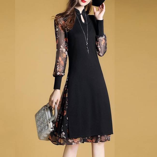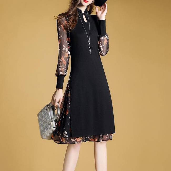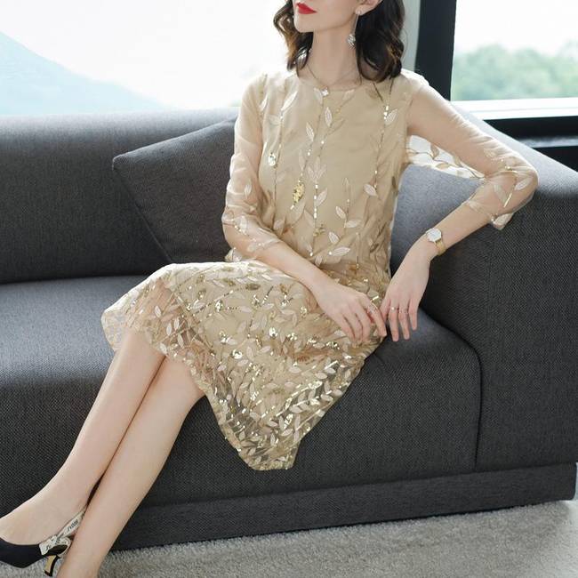 氣質七分袖復古立體刺繡娃娃款a字裙,星星點點的綴在飄逸的雪紡布料上,中長款版型,從這就可以看出裙子在女性服裝中所占的地位有多高。