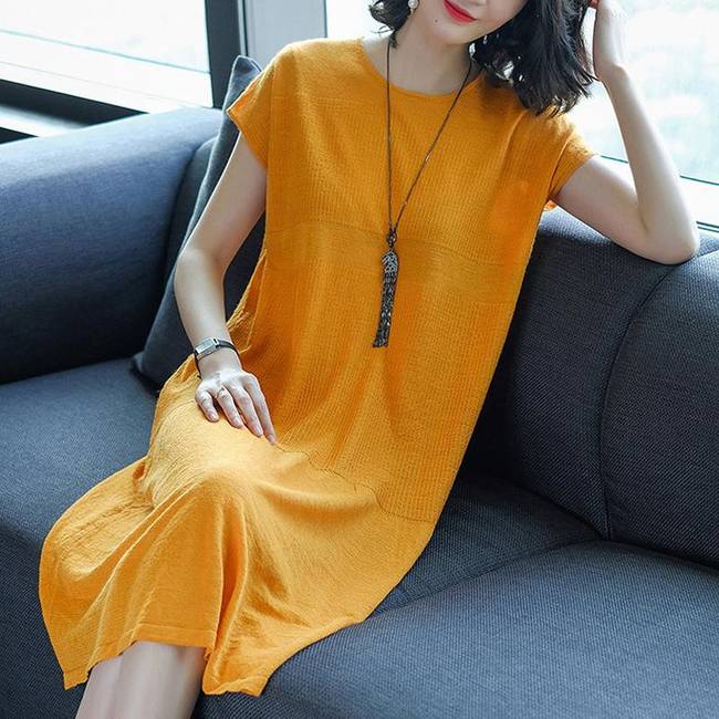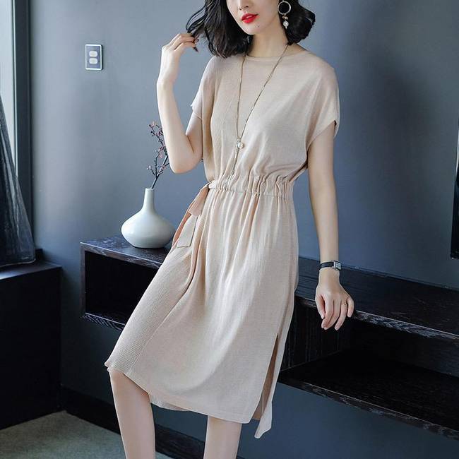 2018春胖MM寬松七分袖A字裙,可以搭配高跟鞋或者運動鞋,經過特殊處理,優(yōu)雅時柔而不嬌,配一雙高跟鞋就能美美的出門了。