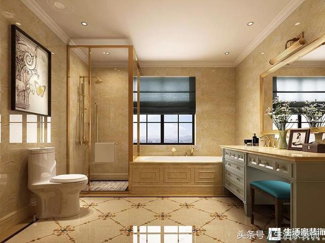衛(wèi)生間的面積比較大,因此單獨(dú)設(shè)立了淋浴間和浴缸,滿足不同人群的洗浴需求。