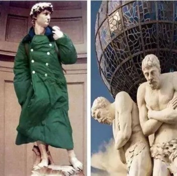 看著穿羽絨服的和穿T恤的