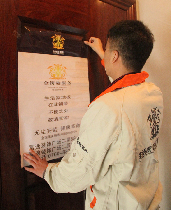 受制于地板行業(yè)長期以來的服務(wù)不規(guī)范,導(dǎo)致用戶在地板安裝和使用時體驗感大大降低,也影響了產(chǎn)品本身的壽命。自2011年起,生活家地板全面升級推行“金鑰匙服務(wù)”,通過一個核心,137項準(zhǔn)則的細(xì)致服務(wù)標(biāo)準(zhǔn),為用戶的服務(wù)打造切實保障。同時,生活家地板在行業(yè)內(nèi)率先啟用無塵安裝,采用方便、快捷的鋪裝技術(shù)解決消費者在鋪裝中“粉塵危害”的難題,使消費者能更近距離地感受“金鑰匙服務(wù)”帶來的舒適體驗。