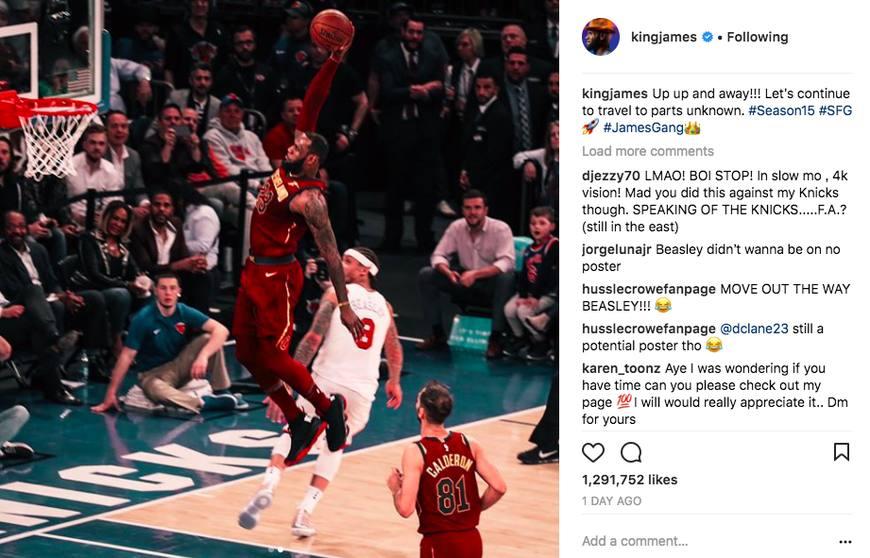 每當(dāng)他取得了什么紀(jì)錄,或者貢獻了什么精彩的傳球蓋帽,他總會適時發(fā)在社交網(wǎng)絡(luò)上,似乎是想提醒大家他究竟有多強。比如在他拿到生涯三萬分之前,就已經(jīng)在社交網(wǎng)絡(luò)上慶祝了一番,稱“我要做第一個恭喜自己的人”,制造了很多話題。