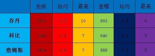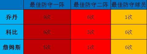 實事求是的說,三人在防守端的差距還是挺大的。喬丹的防守能力在三人中是最強的,也是最愿意去防守的。一個最佳防守球員就是對他最好的褒獎。而科比的防守能力也是歷史頂級的存在,12次的最佳防守陣容則是最好的證明。