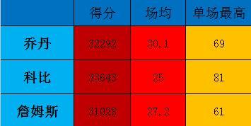 從進攻端的表現(xiàn)來看,三人都有著無解的進攻能力,得分能力都相當突出,歷史上三萬分的大神只有七人,而這三位就位列其中。其中喬丹和科比都已退役,而詹姆斯還在繼續(xù)累積自己的得分。不出意外,詹姆斯的得分將會位列三人之首。