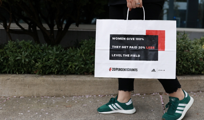 4月9日,阿迪達(dá)斯宣布與全球性的女性公益組織Lean In合作,在線上平臺(tái)與線下門店推出名為“20 Percent Counts”的活動(dòng),以關(guān)注女性平均薪酬比男性低了20%的現(xiàn)狀,倡導(dǎo)同工同酬。