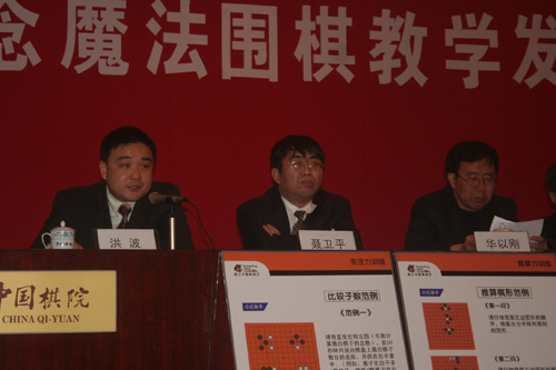 “聶衛(wèi)平圍棋教室”連鎖機(jī)構(gòu)――新概念魔法圍棋教學(xué)發(fā)布會(huì)3月28日下午在中國(guó)棋院舉行。中國(guó)棋牌管理中心主任劉思明、中國(guó)棋院院長(zhǎng)華以剛、中國(guó)圍棋協(xié)會(huì)主席王汝南、項(xiàng)目法人代表聶衛(wèi)平、中國(guó)圍棋隊(duì)教練組組長(zhǎng)馬曉春、圍棋部主任張文東、中國(guó)圍棋隊(duì)領(lǐng)隊(duì)華學(xué)明、世界冠軍常昊出席了發(fā)布會(huì)。王元八段擔(dān)任發(fā)布會(huì)的主持人。