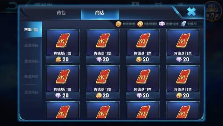 不過當(dāng)擁有體驗(yàn)服資格的玩家們進(jìn)入游戲后,會(huì)驚奇的發(fā)現(xiàn)在賽事門票商店中,原本在日前爆料的牛魔巨無霸皮膚中和王者榮耀跨界聯(lián)動(dòng)的麥當(dāng)勞也有著不小的戲份各大賽事門票的圖標(biāo)都是麥當(dāng)勞的經(jīng)典LOGO。