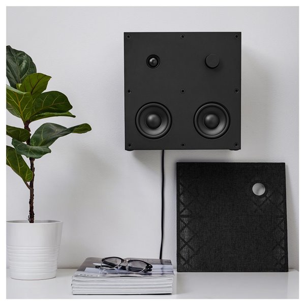 宜家的產(chǎn)品向來以極簡(jiǎn)設(shè)計(jì)聞名,這款藍(lán)牙音箱也秉承了宜家的這一設(shè)計(jì)理念。它像磚塊一樣的長(zhǎng)方體,有黑色和灰白色兩種顏色,尺寸上有8 x 8英寸和12 x 12英寸兩種選擇。除了放在桌子上之外,你還可以通過掛墻支架將它放在墻上,如果你已經(jīng)購(gòu)置了大量的宜家家具,Eneby將能夠無縫融入你的家中。