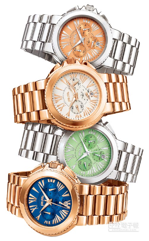 ↑Folli Follie Watchalicious系列腕表,金屬色煉帶與繽紛表盤呈現(xiàn)迷人氣息,價(jià)格未定。