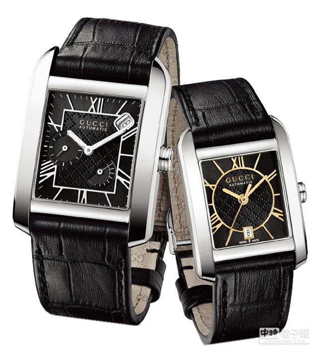 ↑Gucci Handmaster自動(dòng)腕表,男表(左)為不銹鋼表殼搭配銀色羅馬數(shù)字時(shí)標(biāo)與指針,26萬6000元。女表(右)不銹鋼表殼搭配玫瑰金色指針、時(shí)標(biāo),25萬2000元,各限量50只。