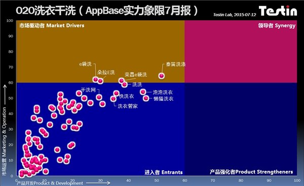 在重視線下服務(wù)的同時(shí),線上服務(wù)質(zhì)量也需要格外關(guān)注,O2O不同于其他模式,兩手都要硬,兩手都要抓才行。從Testin AppBase的象限來(lái)看,目前O2O洗衣干洗行業(yè)還未出現(xiàn)行業(yè)領(lǐng)導(dǎo)者與產(chǎn)品強(qiáng)化者,這也變相說(shuō)明這個(gè)行業(yè)的潛力與強(qiáng)大爆發(fā)力。