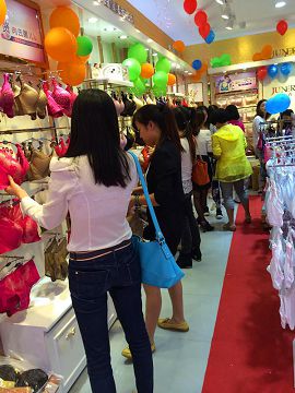 \u00A0\u00A0\u00A0\u00A0今天的情況就像周董那首歌唱的一樣:“天天爆滿的滋味,同行們都想了解!”由于昨日主打六月玫瑰健康內(nèi)衣的巢湖夢尚內(nèi)衣館生意太過火爆,讓當(dāng)?shù)氐耐卸技娂妭?cè)目,想一窺個中乾坤!于是乎,今天除了迎來一大撥顧客以外,也和不少同行演起了“無間道”呢!