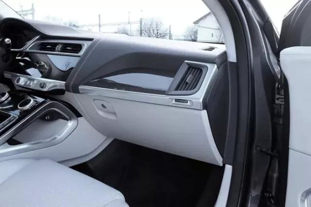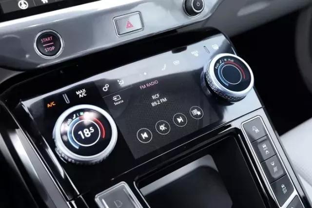 I-PACE量產(chǎn)版的內(nèi)飾同樣采用了比較具有顛覆性的設(shè)計風(fēng)格,中控區(qū)域下半部分采用了懸浮式設(shè)計,上下兩塊中控屏搭配大尺寸實體旋鈕和按鍵控制,保證了操作的便利性和科技感的營造,同時下部中控屏面板后方還設(shè)計有一塊容量可觀的儲物槽。