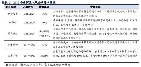 2017年以來阿里、騰訊在零售領(lǐng)域布局連連,其中阿里先后參股聯(lián)華超市、新華都、高鑫零售等線下超市龍頭,騰訊則參股永輝超市、家樂福中國,持續(xù)擴(kuò)充其在線下零售方面的資源版圖。在上述參股合作中,阿里、騰訊兩大巨頭擁有海量流量及數(shù)據(jù),可以為線下零售企業(yè)完成引流、數(shù)據(jù)分析、精準(zhǔn)營銷,通過線上線下打通為后者爭取更多銷售機(jī)會(huì);而后者則利用自身的成熟的零售渠道網(wǎng)絡(luò)、廣泛的線下消費(fèi)者覆蓋、高效的供應(yīng)鏈及物流體系為巨頭提供流量的“載體”,讓用戶群體得以留存甚至不斷擴(kuò)張。