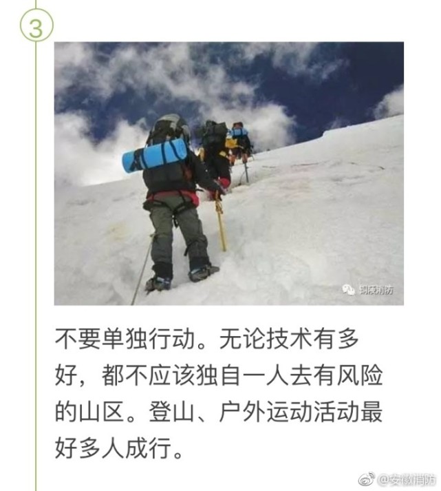 近年來(lái),越來(lái)越多的人參與到各種帶有探險(xiǎn)性質(zhì)的戶外運(yùn)動(dòng)中,但這些運(yùn)動(dòng)帶來(lái)的風(fēng)險(xiǎn)卻讓我們不斷地付出沉重的代價(jià)。提醒各位,要合理規(guī)劃行程,切勿勉強(qiáng),別為了一時(shí)探險(xiǎn)之快而失去了欣賞人生美麗風(fēng)景的機(jī)會(huì)。且行且珍惜,且行且小心…