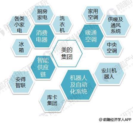 到2017年,美的集團(tuán)將自己定義成一家消費(fèi)電器、暖通空調(diào)、機(jī)器人與自動化系統(tǒng)、智能供應(yīng)鏈(物流)的科技集團(tuán)。截至目前,美的集團(tuán)提供多元化的產(chǎn)品種類與服務(wù),包括以廚房家電、冰箱、洗衣機(jī)、及各類小家電為核心的消費(fèi)電器業(yè)務(wù);以家用空調(diào)、中央空調(diào)、供暖及通風(fēng)系統(tǒng)為核心的暖通空調(diào)業(yè)務(wù);以庫卡集團(tuán)、安川機(jī)器人合資公司等為核心的機(jī)器人及自動化系統(tǒng)業(yè)務(wù);以安得智聯(lián)為集成解決方案服務(wù)平臺的智能供應(yīng)鏈業(yè)務(wù)。